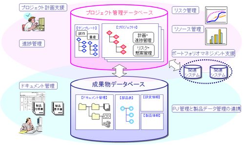 プロジェクト情報を、経営幹部/プロマネ/担当者などのそれぞれの役割に応じた最適な画面上で可視化し、 戦略的に活用することにより、経営者層は「複数のプロジェクトへの迅速な意思決定」を、プロジェクトマネージャは、 「最適なスケジューリング立案と日々の進捗把握」を、担当者は、「作業が明確化され納期厳守」を、 などそれぞれの立場で効果を得ることができます。プロジェクトは、それと関連するBOMや技術文書と関連付けて 管理することができます。