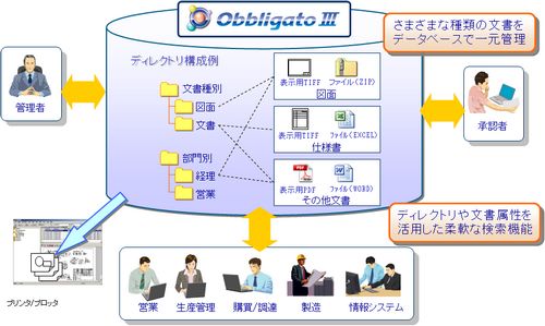 製品開発の過程で発生する大量のCADデータ、図面、仕様書などのドキュメント(ファイル)を製品ライフサイクルに 渡って統合管理し、必要な人が適切なドキュメントを迅速に検索・活用できる環境を実現します。これにより、 流用設計の促進、品質記録の整備、全社・企業間での技術情報の共有によるコラボレーションが 実現します。ドキュメントは、企業の枠を超えたさまざまな利用者からの参照を可能としますが、厳密なセキュリティチェック によってアクセスを制限することも可能です。