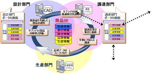 設計の初期段階から、部品のコストや品質、購買面を考慮した上で鮮度の高い部品を選択することができれば、 製品コストを大幅に削減できるだけでなく、開発の後戻りを防ぎ、リードタイム短縮にもつながります。 また、部品情報を共有することにより、部品の標準化を図り、さらなるコスト低減を目指すことも可能です。