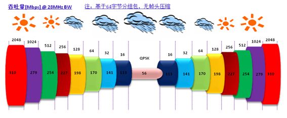 针对4G移动网络的业务特点,微波传输设备通过自适应调制解调接收对抗传输过程中的各种衰落,在传输环境和条件恶化的时候,通过调制解调方式的变化来改变微波系统的性能,从而保证业务的正常传输。调制解调变化而引起的带宽变化,通过微波系统的QoS功能,实现对不同优先级业务的分类处理。微波设备内部8个级别的QoS机制,包括分类、调度、整形、冲突避免机制等可以实现对4G业务更加精细和灵活的处理。通过对内部每个业务队列长度的调整,可以根据不同业务的类型和性质,优化业务传输的时延和吞吐量。