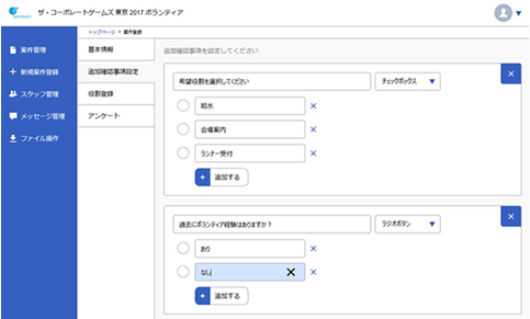 管理者在制作招募志愿者的画面时,可以自由设定可以调查“志愿者的需求”“志愿者的技能”等信息的问题。通过收集到的报名者对这些问题的回答结果,可以根据报名者的性格特征与相应职位所需的经验和技能相匹配,根据匹配程度选择合适的人选,从而实现人尽其才。