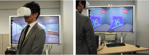 输入店铺商品货架中共通货架陈列信息(PTS:Planogram Transfer Specifications),VR空间中就会自动生成3D商品货架。并且使用并结合FOVE生产的可进行视线追踪的“VR头戴式眼镜”,可以对购物顾客眼睛观看商品货架时的轨迹进行可视化处理,生成热图,从而实现对货架陈列效果的验证。