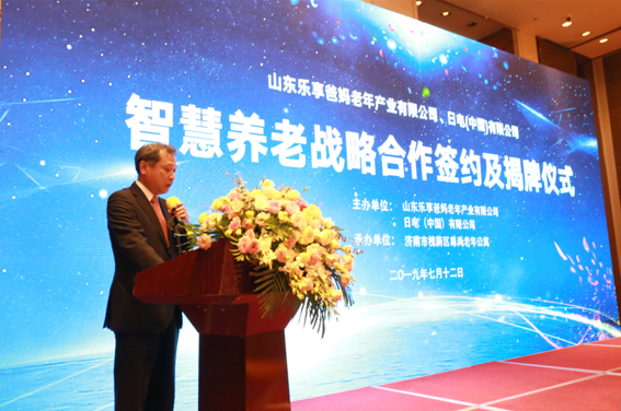 活动现场,山东乐享爸妈老年产业有限公司董事长兼济南市槐荫区尊尚老年公寓院长郭锐表示:“通过与NEC的合作,我们不仅可以学习日本完善的养老经验,更能引进NEC先进解决方案及产品,全面促进乐享旗下养老机构的信息化建设,推动中国养老产业的不断完善,为老人构建一个宜居、宜养、宜享的晚年生活。”