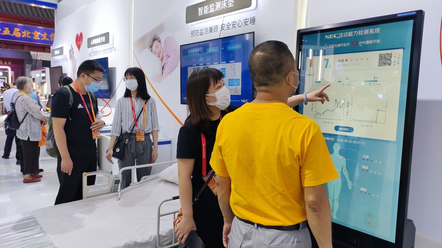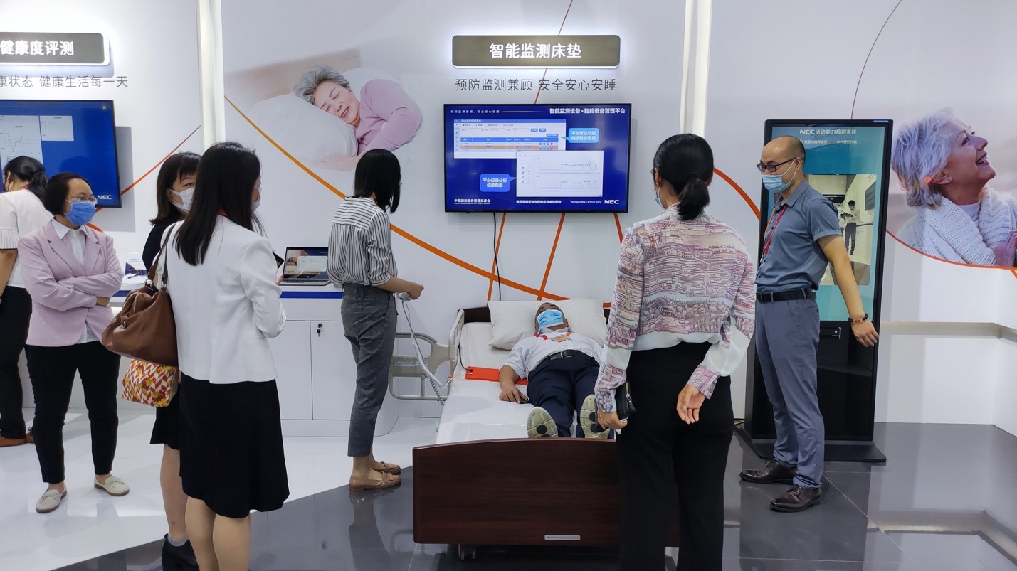 随着我国人口老龄化问题的日趋严峻,对专业化养老机构的需求与日俱增,专业护理人员严重不足。在这种情况下,越来越多的智能化手段的引入,已成为养老产业升级的一大趋势。NEC充分利用自身在ICT及AI方面的先进技术优势及在日本养老领域的独有经验,为中国社会提供智慧养老解决方案。现场展出的NEC的智能监测床垫解决方案,可通过传感器预测老人或患者在床上时的体动、心跳、呼吸及离床状态。当老人或患者离开床垫时,设备即向护理员发出通知,护理员可立即前去看护,防止跌落事故或者紧急情况的发生,助力护理机构、养老机构提供更加专业、高效的护理服务。