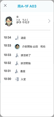 护理机构人员接收信息的智能手机应用程序是与Unlog公司合作开发的。Unlog公司面向个人的肠道活动支持应用程序下载已达到90万次。利用这些经验和知识,建立了无需过多语言说明即可直观操作的应用程序界面。