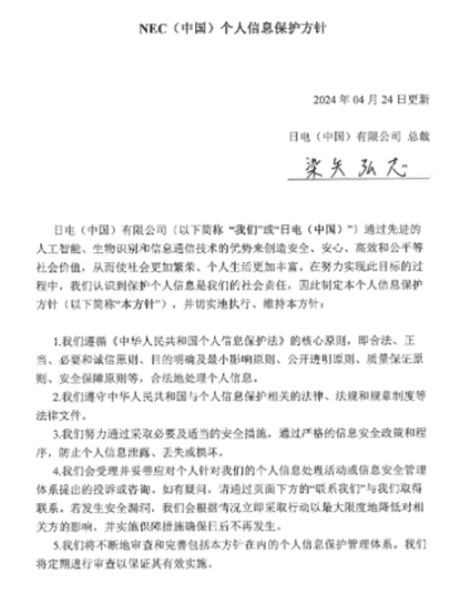- 解释权:您有权要求日电(中国)对本方针进行解释说明。